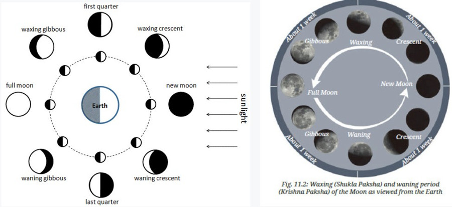 In India, the waxing period is called Shukla Paksha, and the waning period is called Krishna Paksha.