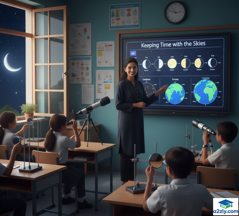 This chapter, “Keeping Time with the Skies”, explores how astronomical movements — the rotation and revolution of the Earth and Moon — gave birth to days, months, and years. You’ll also discover India’s rich heritage in calendar-making and modern scientific applications like artificial satellites.
