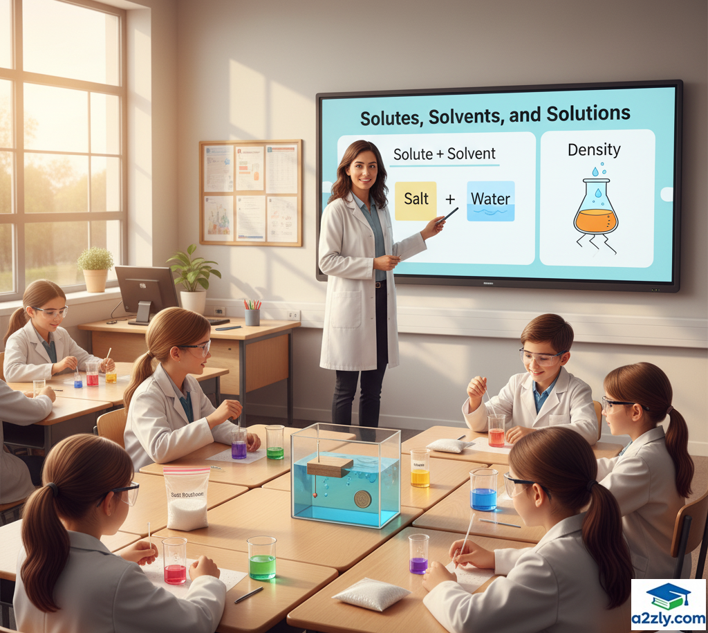 This chapter, “The Amazing World of Solutes, Solvents, and Solutions”, explores how substances mix, why some dissolve while others don’t, what makes water the “universal solvent,” and how scientists measure density — the property that explains why ice floats while iron sinks.